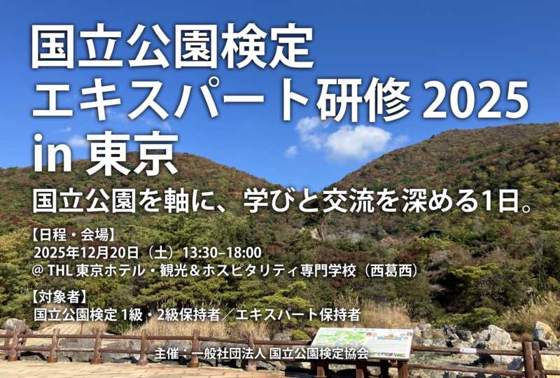 世界遺産検定マイスター、日本遺産ソムリエといろいろ資格試験がありますが、今、注目されつつあるのが、国立公園検定❣その最高位が国立公園検定エキスパート❣そのエキスパートになる研修が今週20日(土曜日)にあります❣ まだ多少募集枠が残っているみたいですので、是非、研修に参加して、エキスパートの証であるグリーンリーフバッジをGETしませんか? 楽しい交流も生まれます❣